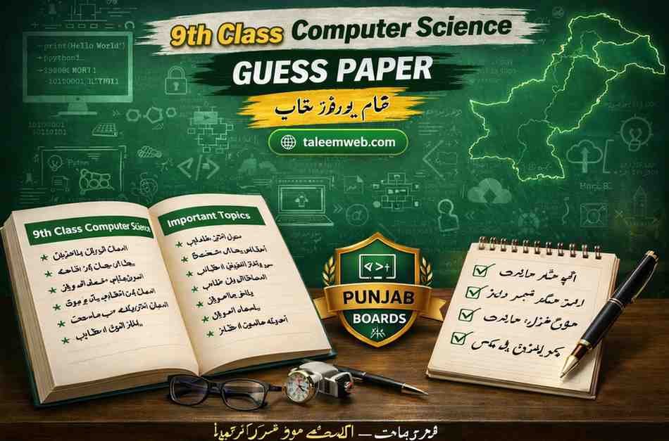 Paper Pattern (Punjab Board) Important Chapters Focus on these important chapters: Important MCQs Guess Short Questions Guess Chapter 1–3 Chapter 4–6 Chapter 7–8 Long Questions Guess Question 1 Question 2 Question 3 Important Concepts These concepts are frequently asked in exams. Preparation Tips Final Words This 9th Class Computer Science Guess Paper 2026 is useful … Read more