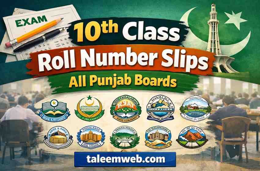 Roll number slips for the 10th class of all Punjab boards, including Lahore, Multan, Gujranwala, Faisalabad, Rawalpindi, Sargodha, Sahiwal, DG Khan, and Bahawalpur, are released in February, about two weeks before the annual exams. These can be obtained from schools for regular students and downloaded from the board’s website for private candidates.