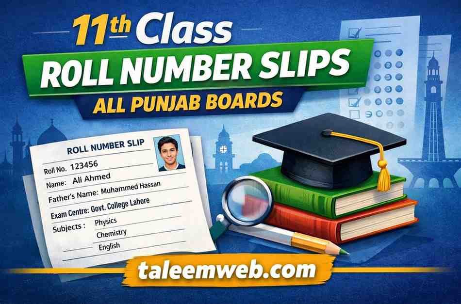 The 11th Class (HSSC Part-I) Roll Number Slips 2026 for the Punjab boards have not been released yet. According to education updates, roll number slips are typically issued 10–15 days before the annual exams.