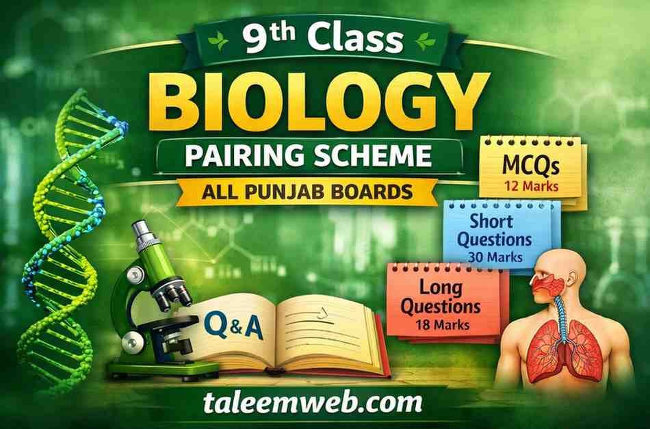 The 9th Class Biology Pairing Scheme 2026 for all Punjab Boards is very useful for exam preparation. The scheme allows students to understand the paper pattern while they focus on their main chapters, which need to be studied. Students who prepare for exams using the pairing scheme will find success in achieving high Biology grades.