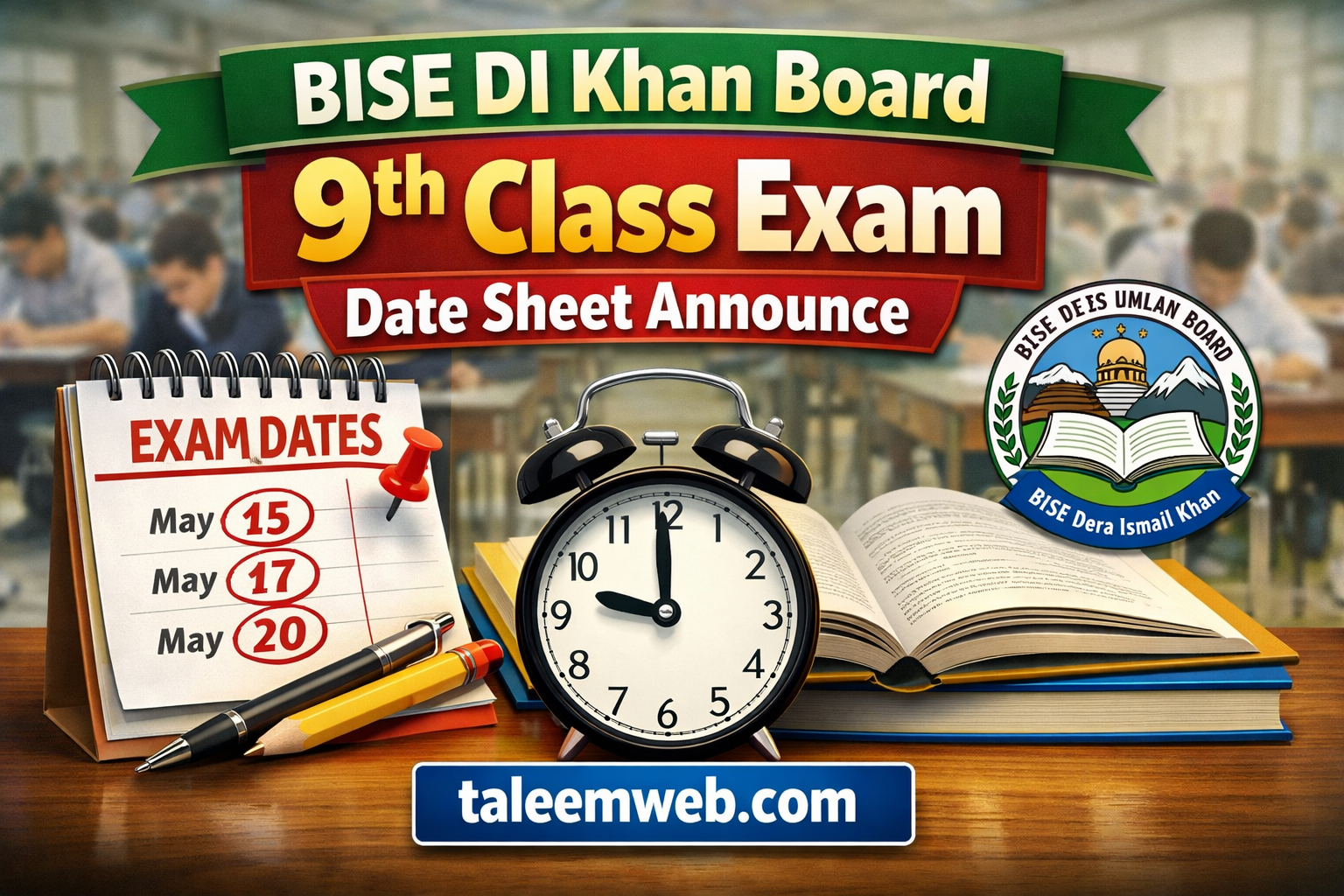 Annual Examination of 9th class will be conducted in March & April 2026, whereas the official date sheet will be issued in February–March 2026 on the BISE DI Khan website.